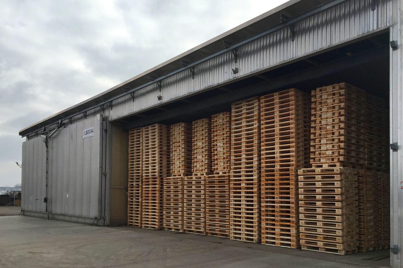 После изготовления готовый поддон помещается в сушильные камеры, где обрабатывается под действием высоких температур. Камерная сушка необходима для уничтожения вредоносных организмов и соблюдения карантинных требований, необходимых для свободного пересечения границ.